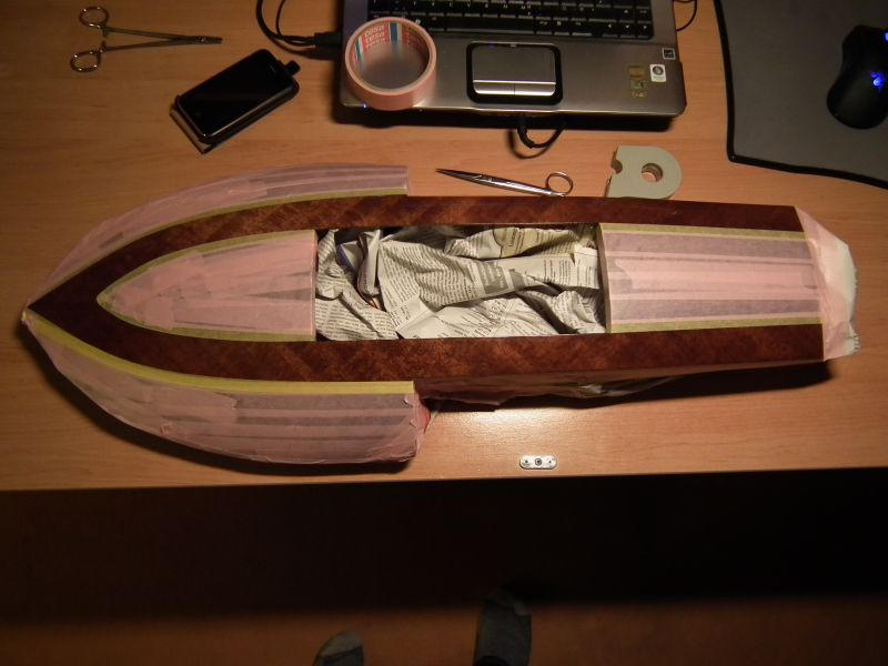 Nachdem der Lack 3 Wochen Zeit zum trocknen hatte, sind nun endlich die roten Rennstreifen dran.